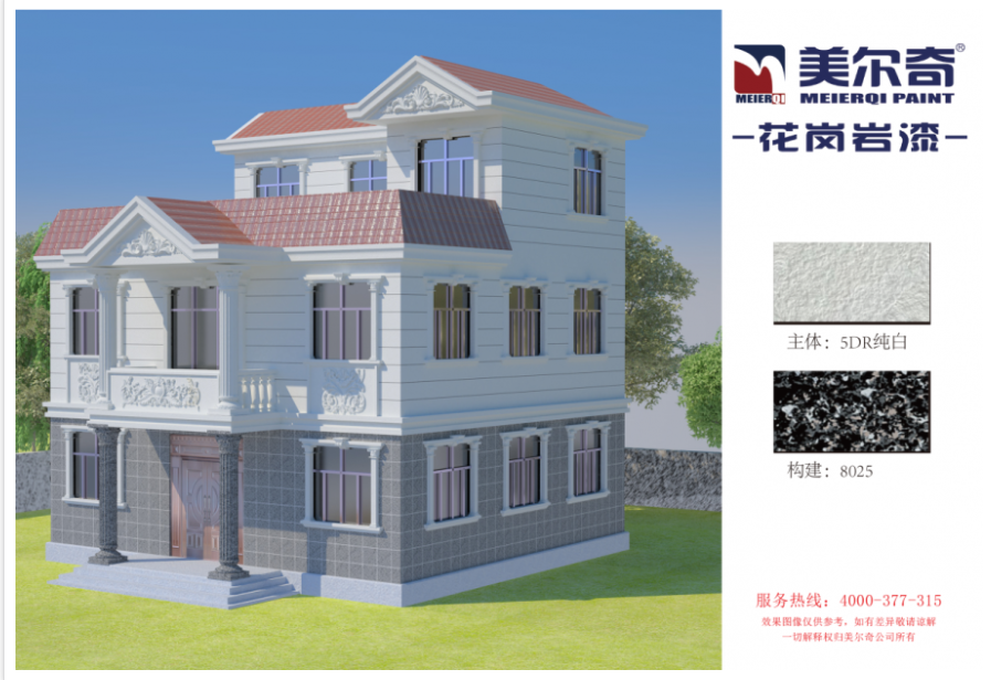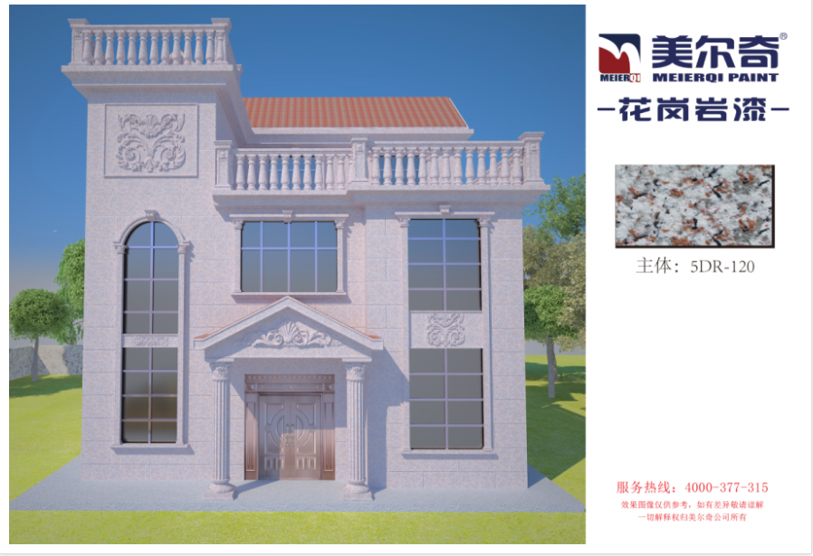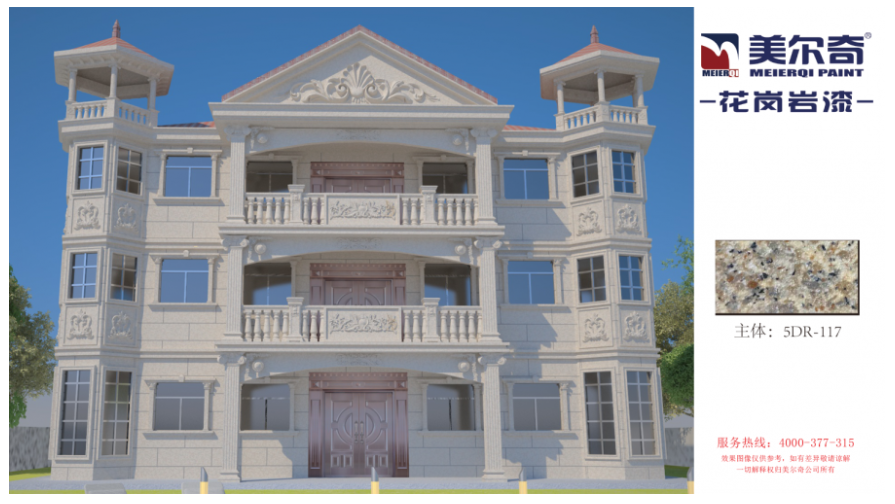 作為新型環(huán)保外墻裝飾涂料,美爾奇仿石漆輕質(zhì)中硬,色彩天然逼真,使用抗開裂的高彈復(fù)合化工材料,耐擦洗、耐高溫、使用壽命長。具有防火、防水、耐酸堿、施工性優(yōu)、展色好、柔韌性好、強附著、強抗沖擊、高質(zhì)感、粘力強、永不褪色等特點。